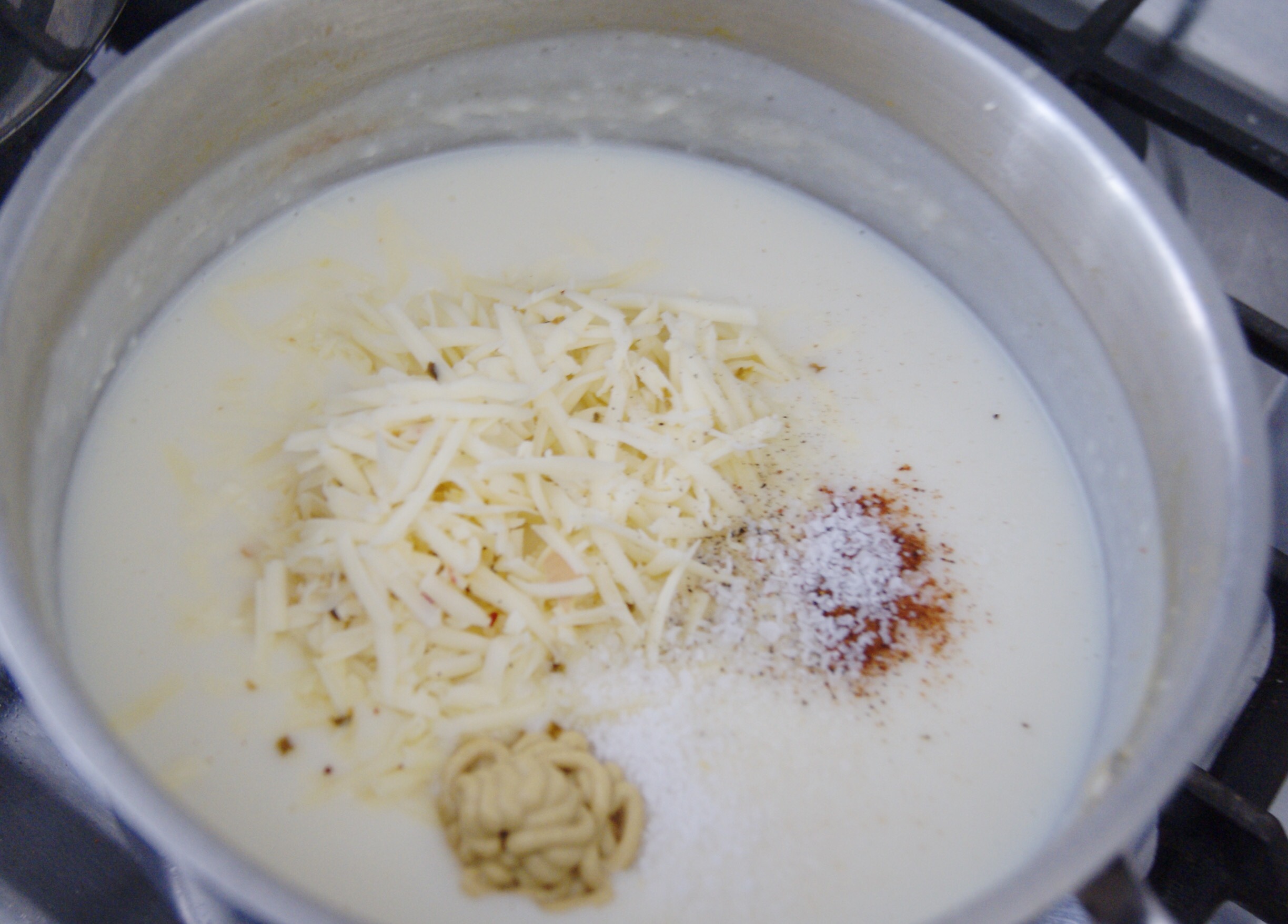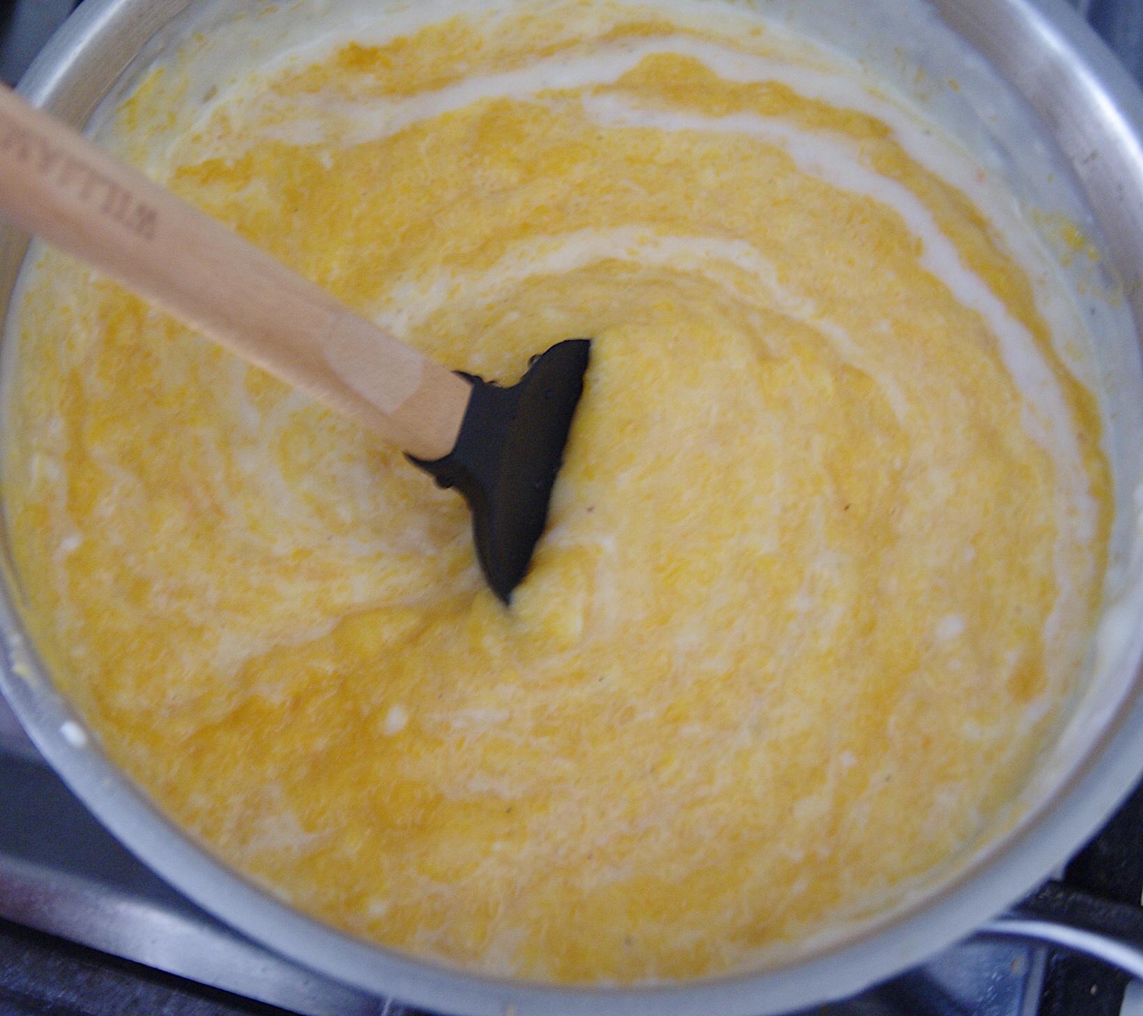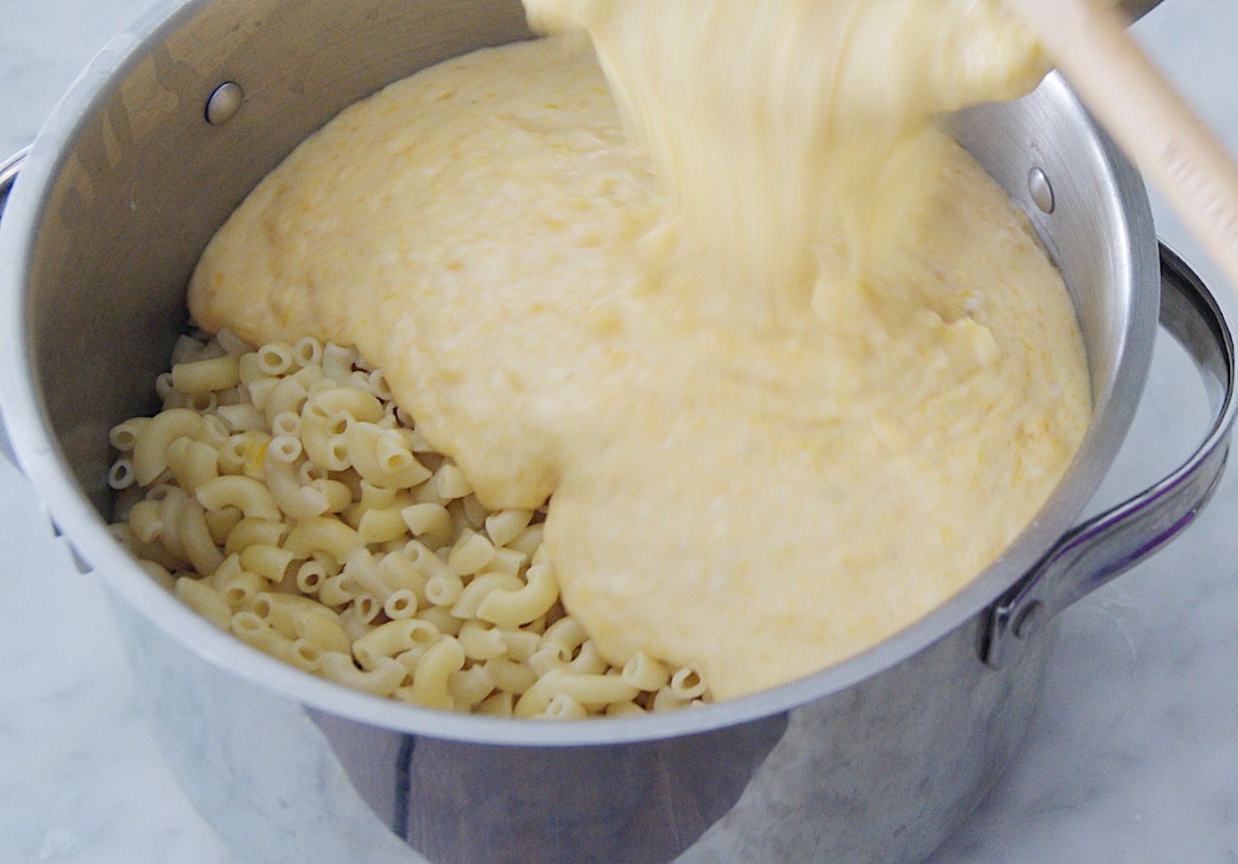 Add mashed squash to the cheese sauce and mix well until totally combined.