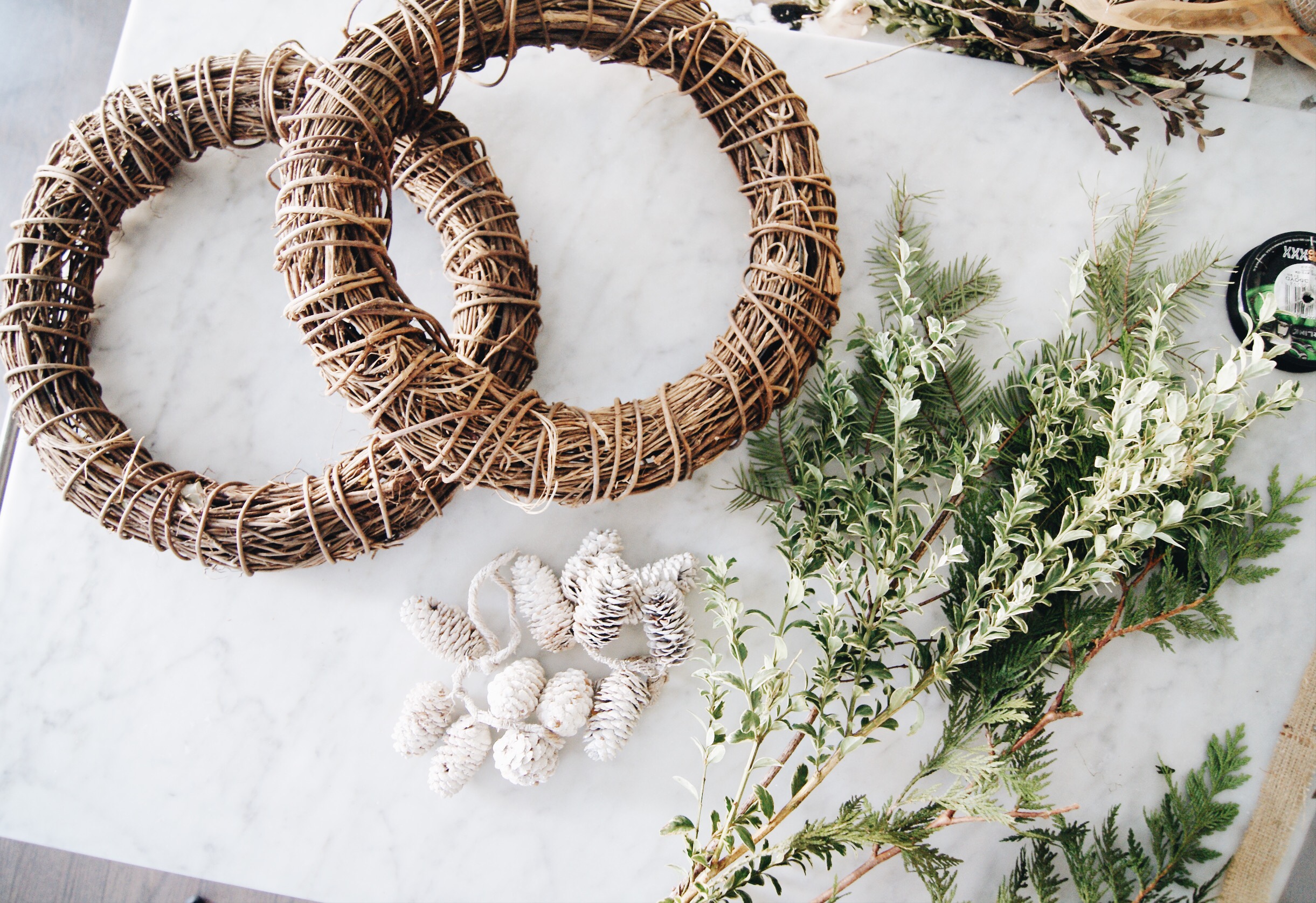 Greenery 6 branches for 2 wreaths ( I used fir, cedar and euonymus)