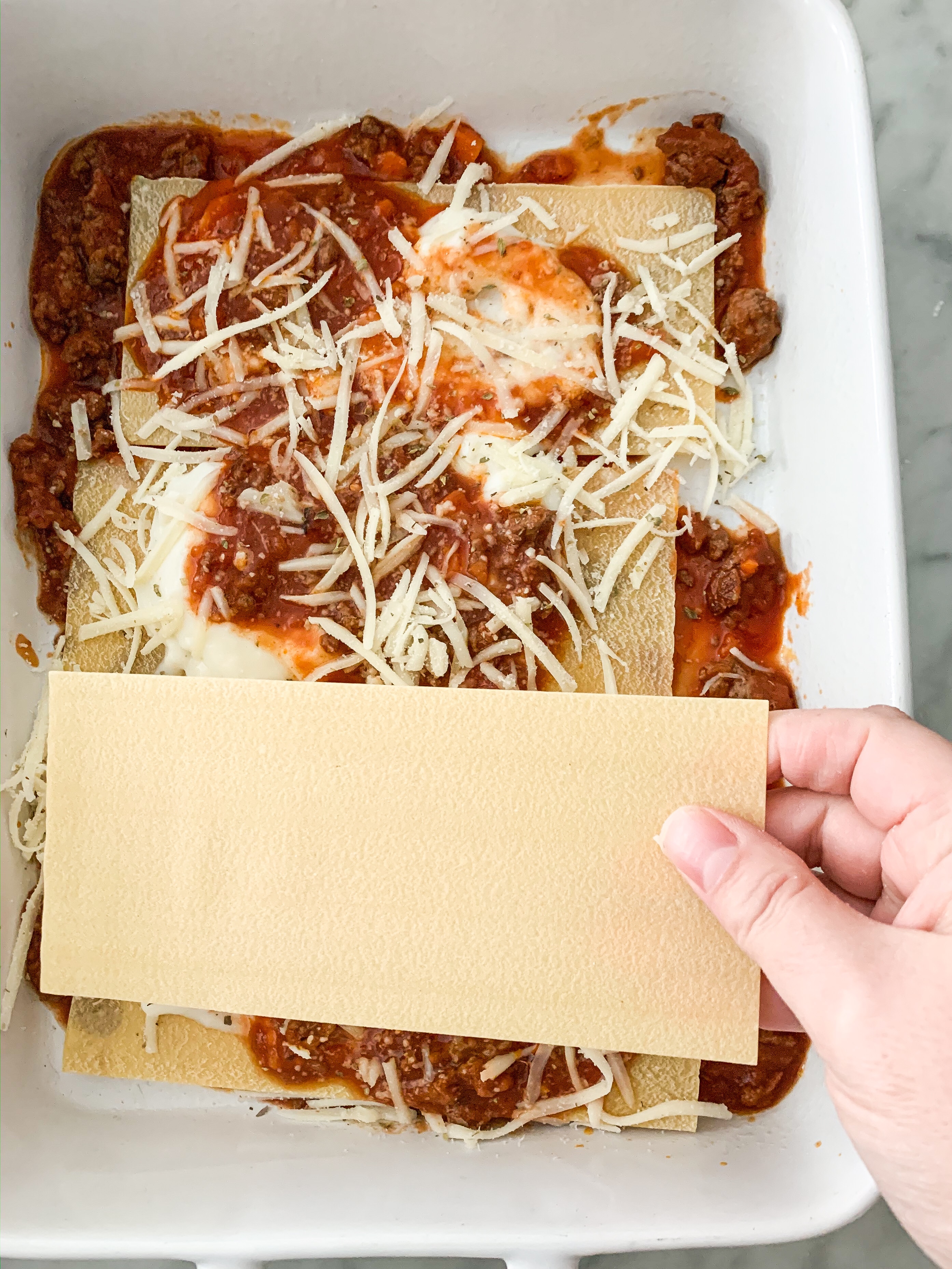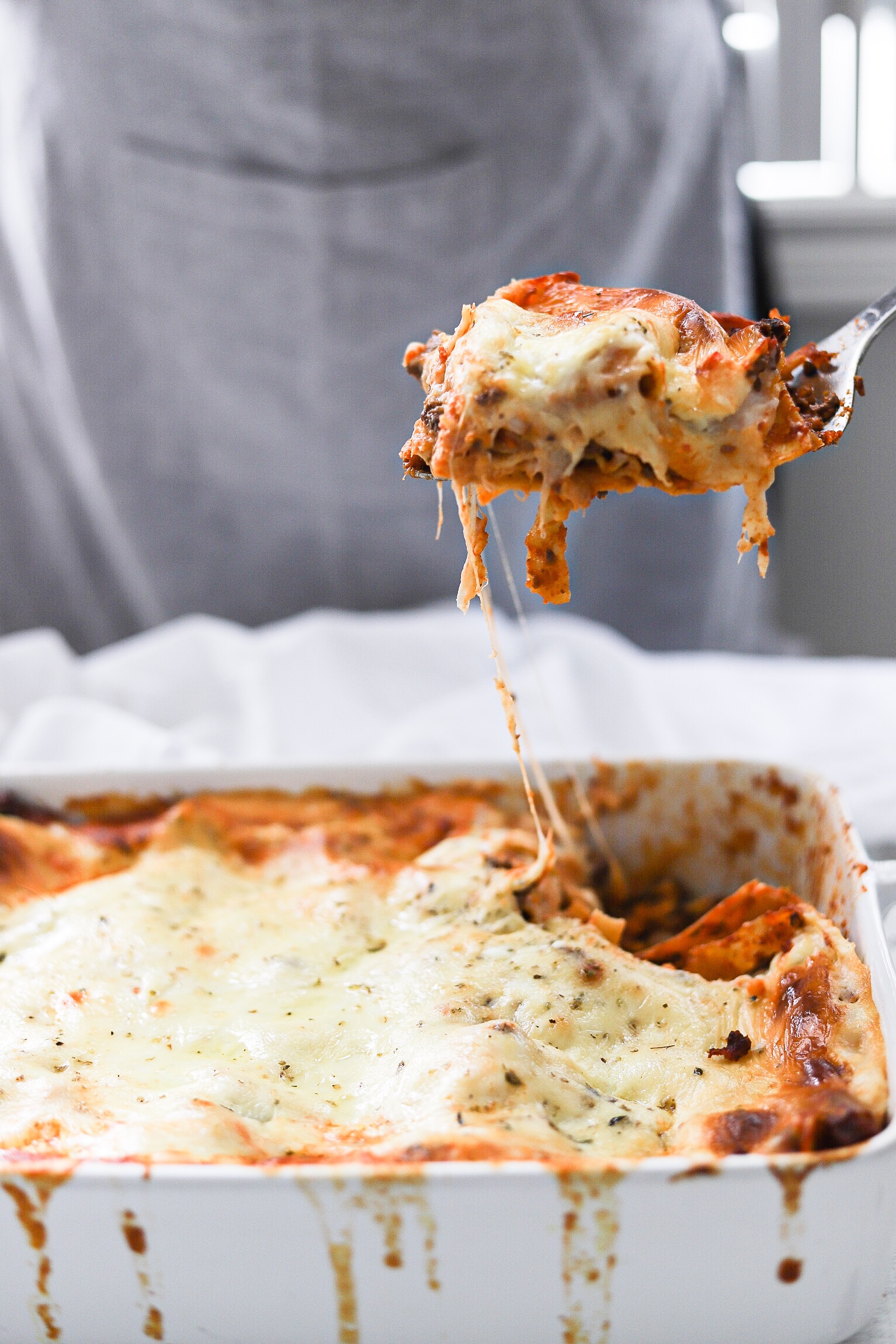 This is classic lasagna. There are steps, but you can even do them ahead of time and once the sauces are made, assembly is a snap. Steps there may be, but this is a simple recipe with simple ingredients. I always use no boil noodles, look for the Italian brands that are in smaller boxes. For a vegetarian lasagna option check out my Sweet Potato Spinach & Mushroom version