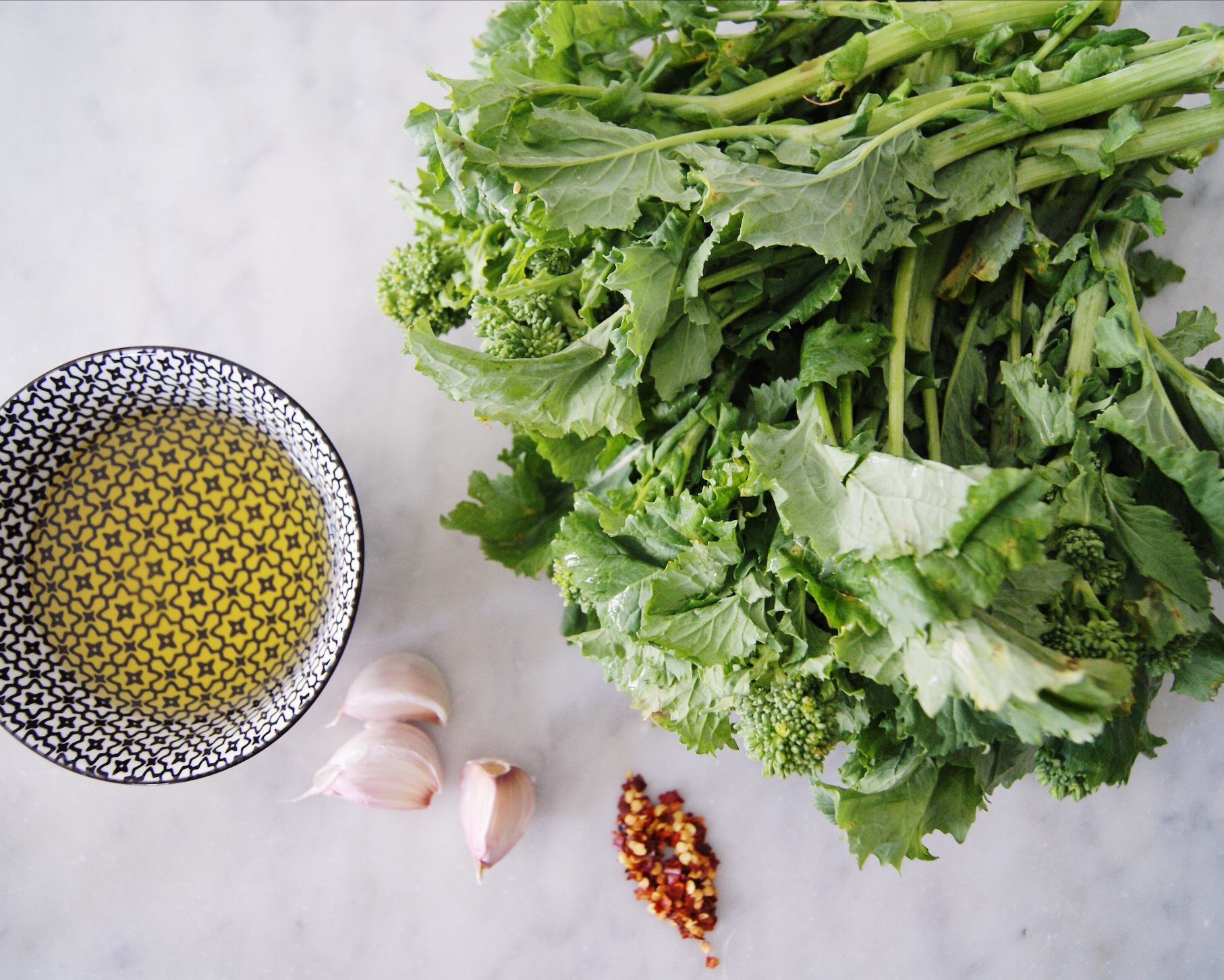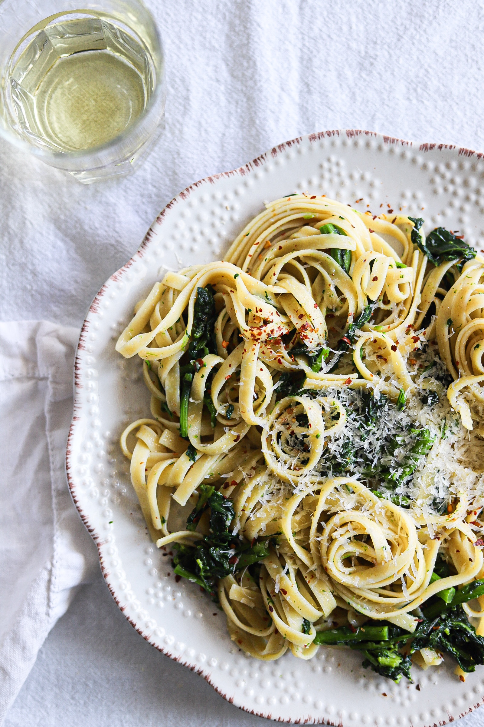 I wasn’t very familiar with rapini before meeting my husband. The Italians love this slightly bitter green also known as broccoli rabe that’s very slightly reminiscent of broccoli even though it isn’t related to broccoli at all. If you don’t want to boil it, You can pan sauté it with olive oil and chilli flakes until it wilts down and it makes an amazing side dish or an amazing pizza topping (just make sure you drain it well). This isn’t a typical pasta recipe that has a sauce, I would consider it more of a ‘dressed’ pasta. I love using spaghetti, linguine or fettuccine for this recipe but any short pasta would be really good too. Don’t skimp on the garlic, it’s the best part. Serves 2-4