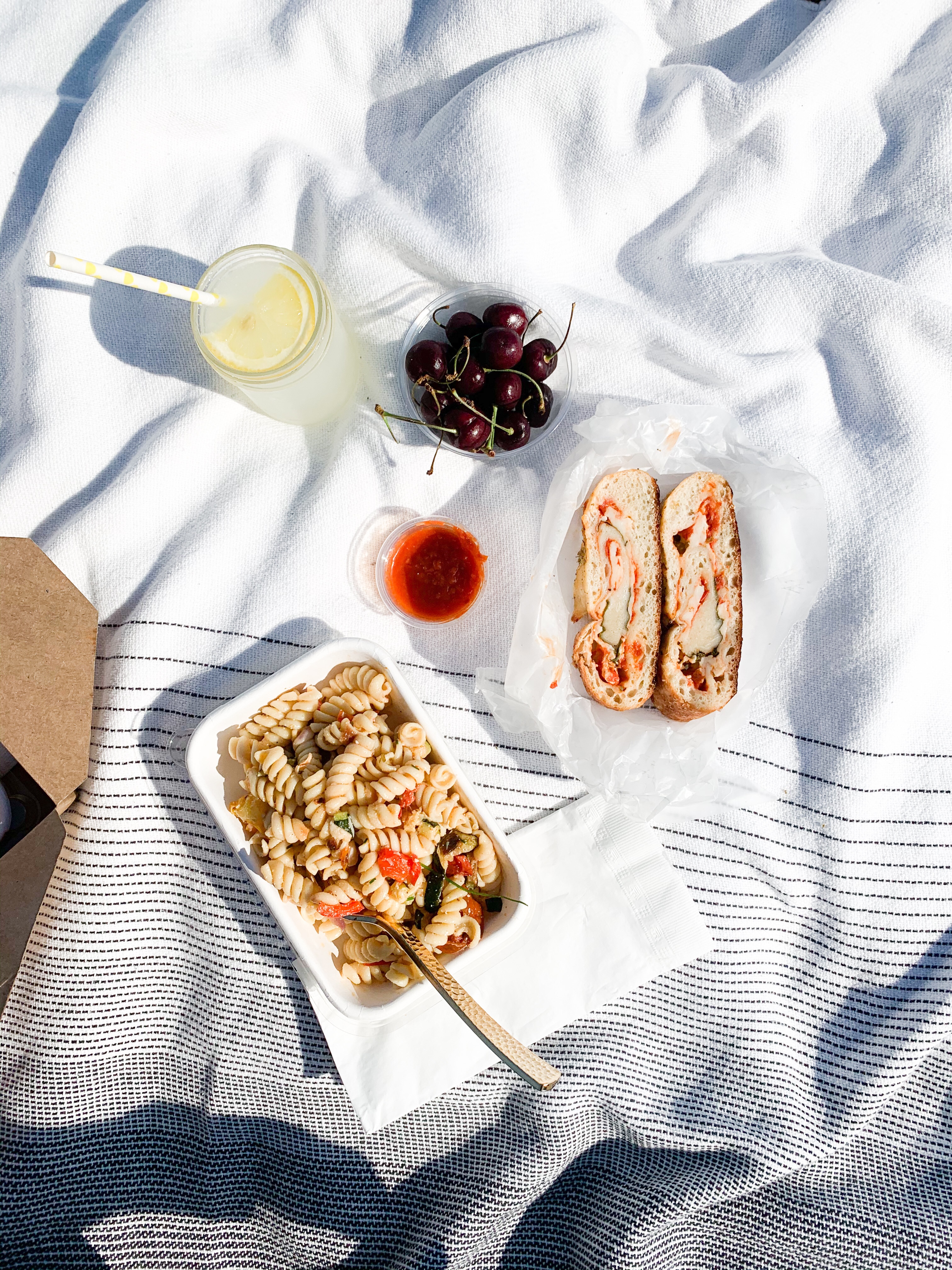 Pasta salad is usually an ok side, but this one is so yum if I do say so, that it’s the star of the lunch. Link here to grab my recipe for Roasted Summer Vegetable Pasta Salad
